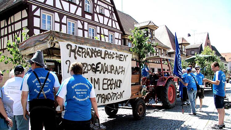 Die Beibehaltung der Tradition ist den Ortsburschen natürlich ein großes Anliegen, wie ihr Sprecher Fabian Reimer betonte. Das Transparent sage eigentlich schon alles: "Kerwaburschen Herzogenaurach zum Erhalt der Tradition". Da aber auch bei den Kerwasburschen der demografische Wandel nicht Halt macht, werden bereits fürs kommende Jahr Burschen gesucht, die auch anpacken können.