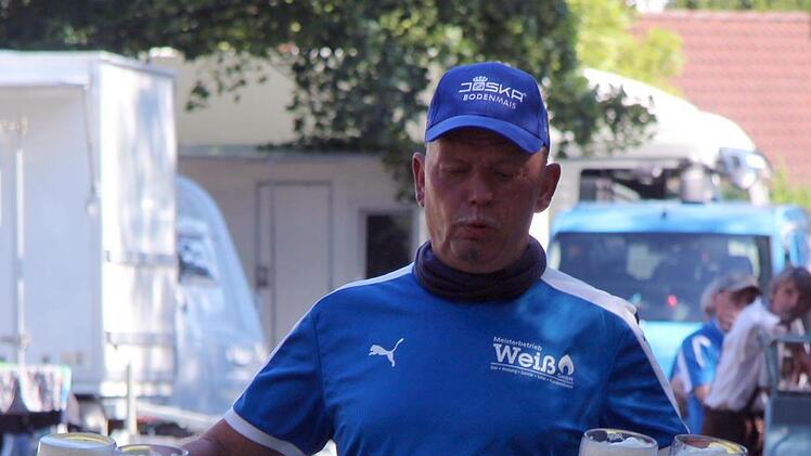 Am Ende gab es auch Lob von Bürgermeister German Hacker ("Super Arbeit! Schöne Tradition!") und nach dem kräftezehrenden Aufstellen des Baumes hatten sich die Kerwaburschen nach ihrem Einzug vor den Kellern eine frische Maß Heller-Bier auch redlich verdient.