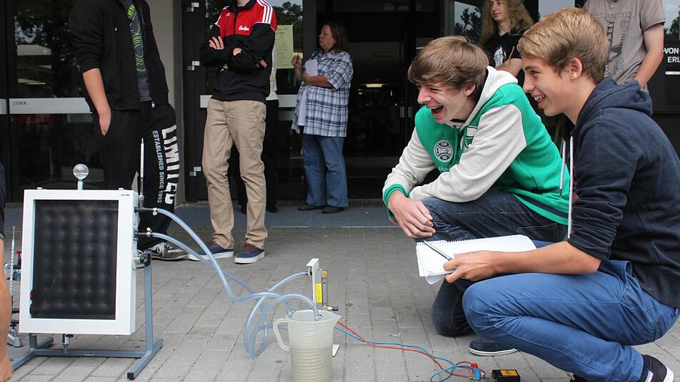 Der 15-jährige Benjamin Kahlert aus Spardorf ist ein echter Physik-Crack. Das Verständnis der physikalischen Prozesse mache ihm enorm Spaß. "Ich finde es einfach spannend, verstehen zu lernen, warum die Welt so ist, wie sie ist. Die grünen Technologien sind vielleicht noch nicht ganz reif, aber wenn man daran forscht, entwickeln sie sich schnell weiter", sagt er und schließt Messinstrumente und ein kleines Lämpchen an eine der Solarplatten an. Und: Trotz der Wolken leuchtet das Licht sofort auf.