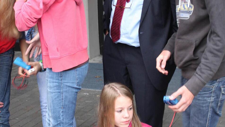 Landrat Eberhard Irlinger (SPD) ist gekommen, um sich ein Bild davon zu machen, wie die Anschaffungen von den Schülern angenommen werden. Und er erklärt die Absichten hinter der Initiative des Landkreises: "Wir müssen mit den regenerativen Energien dort anfangen, wo viele Menschen sind. Was wäre da besser geeignet als die Schulen? Schließlich seid ihr die Nachwuchsforscher", appelliert er an die Neuntklässler.