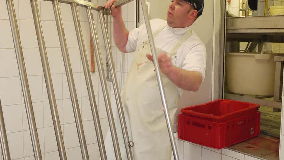 Am Mittwoch ist sein Wursttag. Da entstehen die Brüh- und Rohwürste, also die gängigen Aufschnittsorten zum Beispiel. Die Rohpolnische wird dann über Nacht geräuchert, so dass auch sie am Donnerstag in der Kühltheke liegt. Donnerstag bis Samstag ist nur Verkauf. Mit Ausnahmen von Brat- und Weißwürsten. Die macht Baumüller täglich frisch. "Bratenfleisch kann insgesamt bei guter Kühlung über eine Woche gelagert werden", erklärt er.