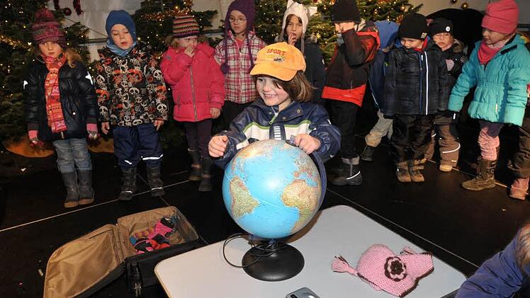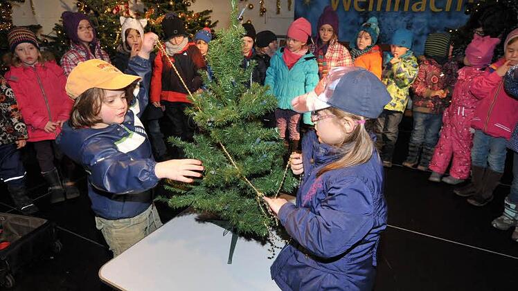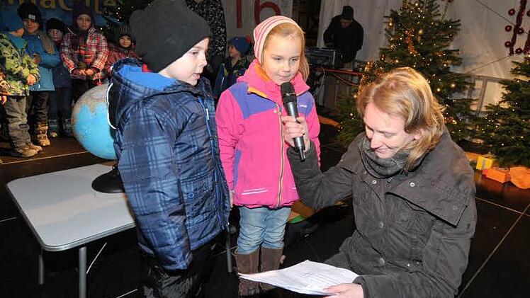 Aus dem Herzogenauracher Montessori-Kinderhaus standen am späten Montagnachmittag 19 Kinder im Vorschulalter von fünf und sechs Jahren mit ihrer Leiterin Elfriede Ploner, unterstützt von einigen Erzieherinnen, hinter dem 16. Türla des lebendigen Adventskalenders auf der Bühne am Marktplatz in Herzogenaurach.