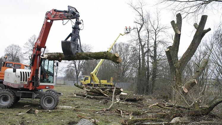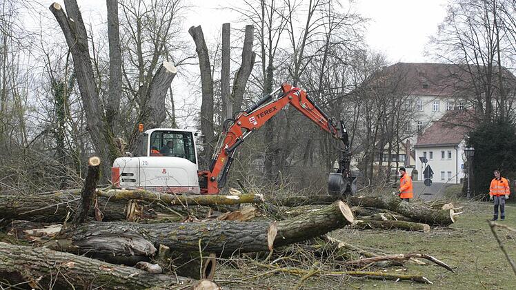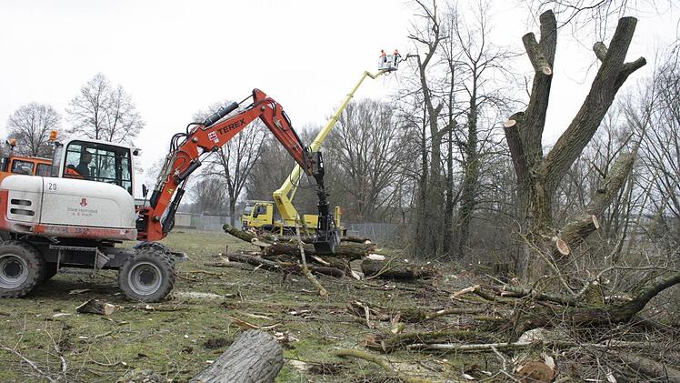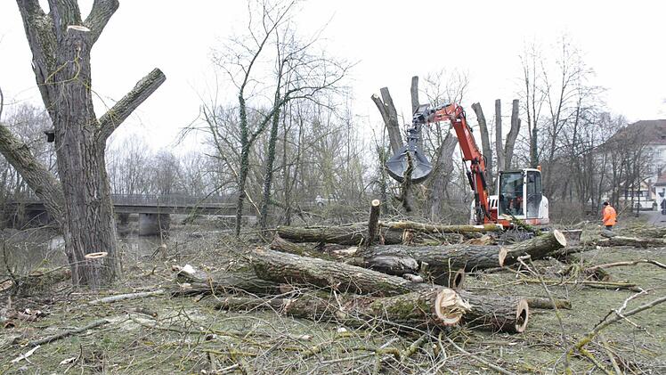 "Wir können kein Risiko eingehen", sagte am Montagnachmittag Bürgermeister Gerald Brehm (JL), als seine Mitarbeiter des städtischen Bauhofs an der Aisch die Motorsägen heiß laufen ließen. Die dort stehenden alten Pappeln wurden auf Torsos zurückgestutzt.