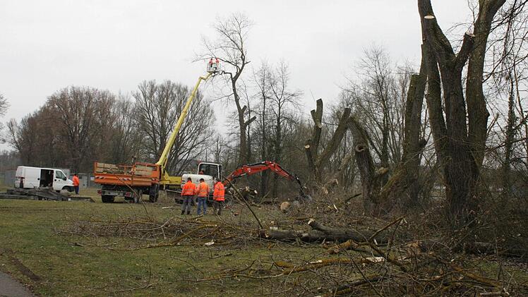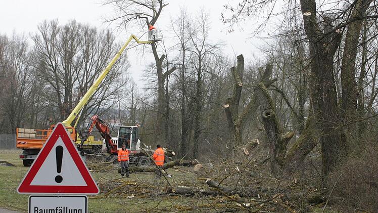 Um Spaziergänger und Angler am Aischufer in Höchstadt vor herabstürzenden Ästen zu schützen, setzten Mitarbeiter des Bauhofs am Montagnachmittag die Motorsäge an.