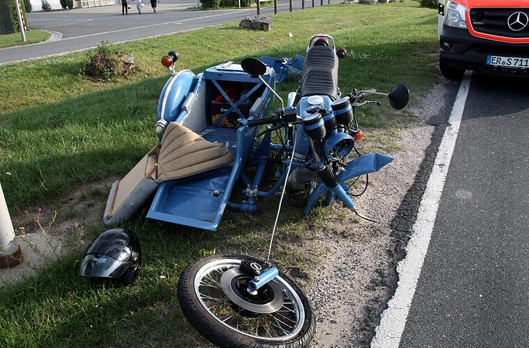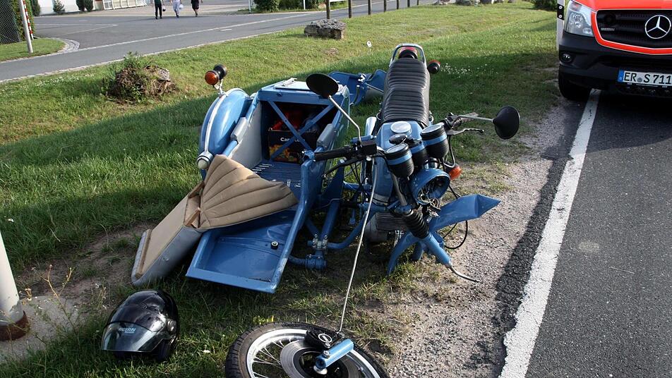 Wie die Polizei mitteilt, befuhr ein 63-jähriger Mann aus Heßdorf mit seinem Motorrad mit Beiwagen der Marke MZ die Erlanger Straße in Richtung Großenseebach. Kurz vor dem Ortsausgang Weisendorf blockierte das Vorderrad, wodurch das Gespann nach links in den Gegenverkehr kam. Ein 50-jähriger Autofahrer aus Dachsbach konnte mit seinem Opel Corsa nicht mehr ausweichen und kollidierte frontal mit dem Gespann.