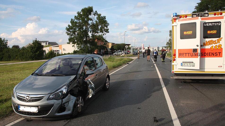 Der Motorradfahrer wurde schwer verletzt in die Chirurgie nach Erlangen eingeliefert. Der Autofahrer blieb bei dem Unfall unverletzt. Am Motorrad und am Auto entstand Totalschaden von insgesamt 15 000 Euro. Beide Fahrzeuge mussten abgeschleppt werden. Das Motorrad wird nun auf technische Mängel untersucht.