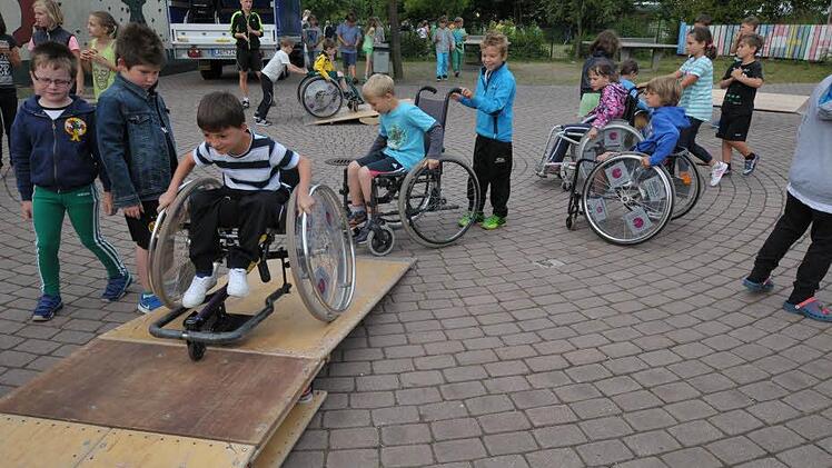 Auf einem Hindernisparcours erfuhren Münchauracher Kinder, was es heißt, seine Beine nicht benutzen zu können.