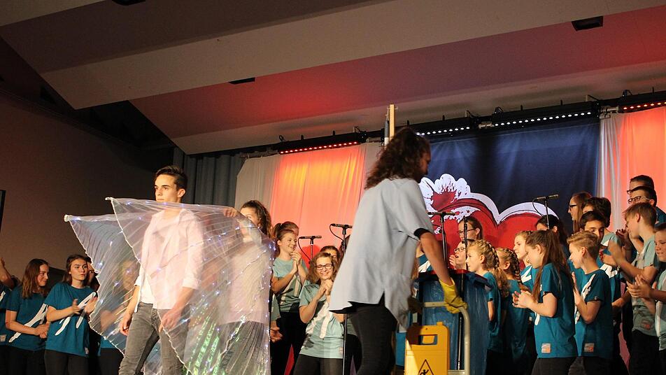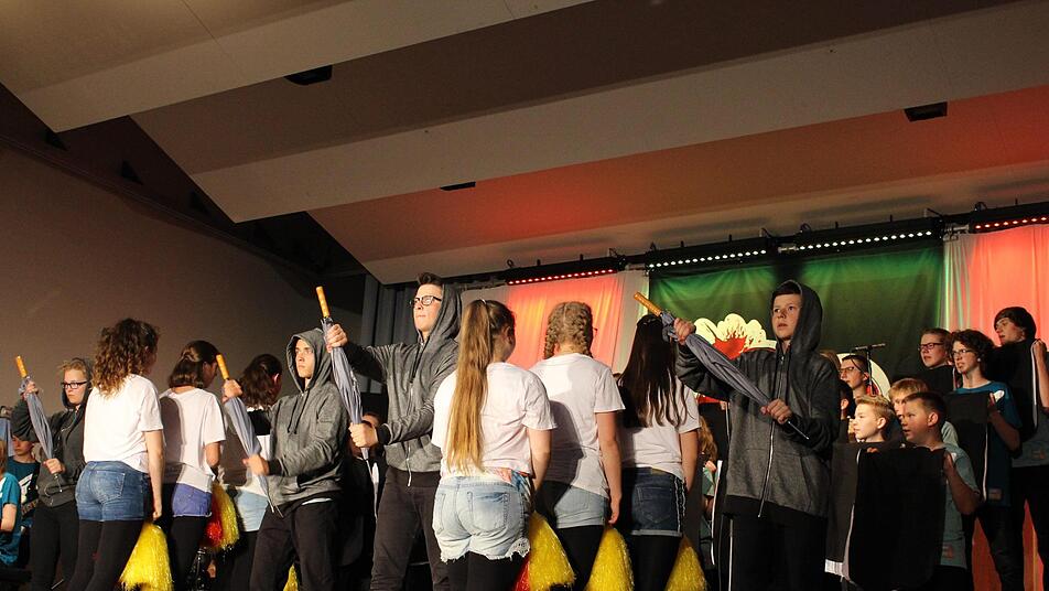Von den Zuschauern in der voll besetzten Ebrachtalhalle gab es stehende Ovationen für die Akteure. Rund 70 Jugendliche im Alter von 12 bis 19 Jahren, darunter auch etliche aus dem Landkreis Erlangen-Höchstadt, standen auf der Bühne.