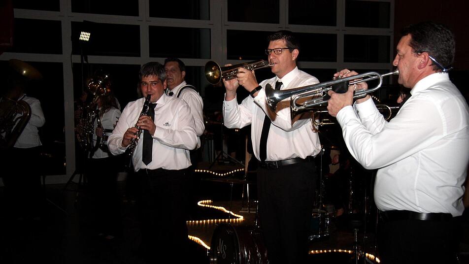 Nach der Pause ging es wieder einen Schritt zurück in die Vergangenheit. "Die Auferstandenen" zogen mit Blasmusik in die Halle ein und animierten das Publikum zum Mitklatschen. Die ehemaligen Musiker aus der Gründerzeit formierten sich noch einmal zum Jubiläum und konnten die Besucher mit den Ohrwürmern "Zwei Tränen" und dem "Donau Dixie" begeistern. Da die Zugabe-Rufe kein Ende nehmen wollten, gaben sie mit dem "Military Escort" einen Marsch zum Besten, der in den 60er und 70er Jahren des vorigen Jahrhunderts zum Repertoire jeder Jugendkapelle gehörte.