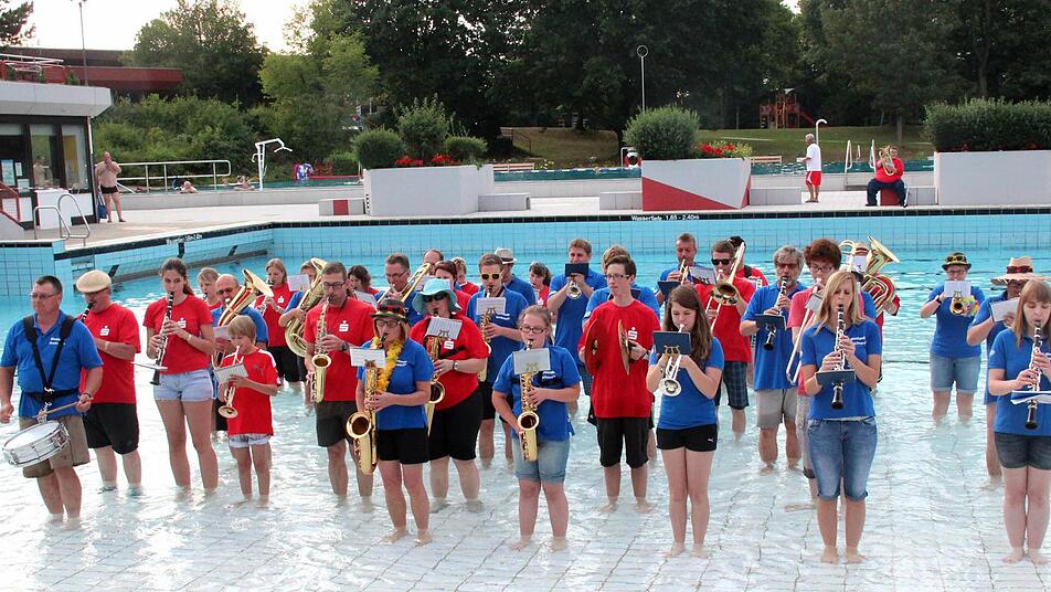 Unter den Klängen des Frankenlieds stapften die Wachenrother Blasmusiker und die Mitglieder der Höchstadter Stadtkapelle am Dienstagabend durch das Wellenbecken des Höchstadter Freibades.