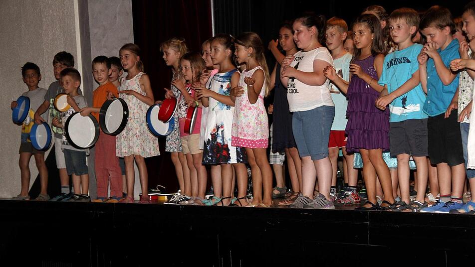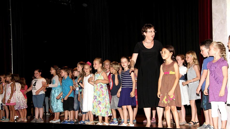 Erfrischend war gleich der Auftakt mit den "Jeki-Kindern" der ersten Klassen der Grundschulen aus Herzogenaurach, die singend in den Saal zogen und die Bühne in Beschlag nahmen. Mit "Heute machen wir Musik" eröffnete die bunte Schar mit den Lehrkräften Christine Elster-Lauer, Gabriele Haberberger und Uli Nix sowie Regina Scherer den musikalischen Abend. Dabei bekam die Lehrkraft Haberberger wahrscheinlich das größte Geburtstagsständchen ihres Lebens, denn nicht nur die Kinder auf der Bühne ließen sie hochleben, sondern auch die Zuhörer stimmten mit ein.