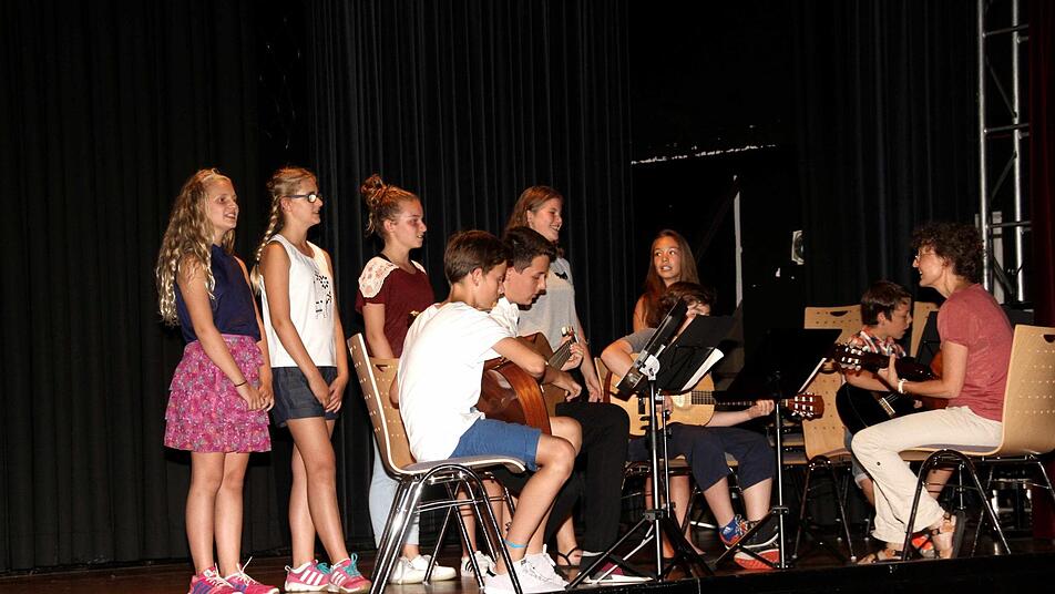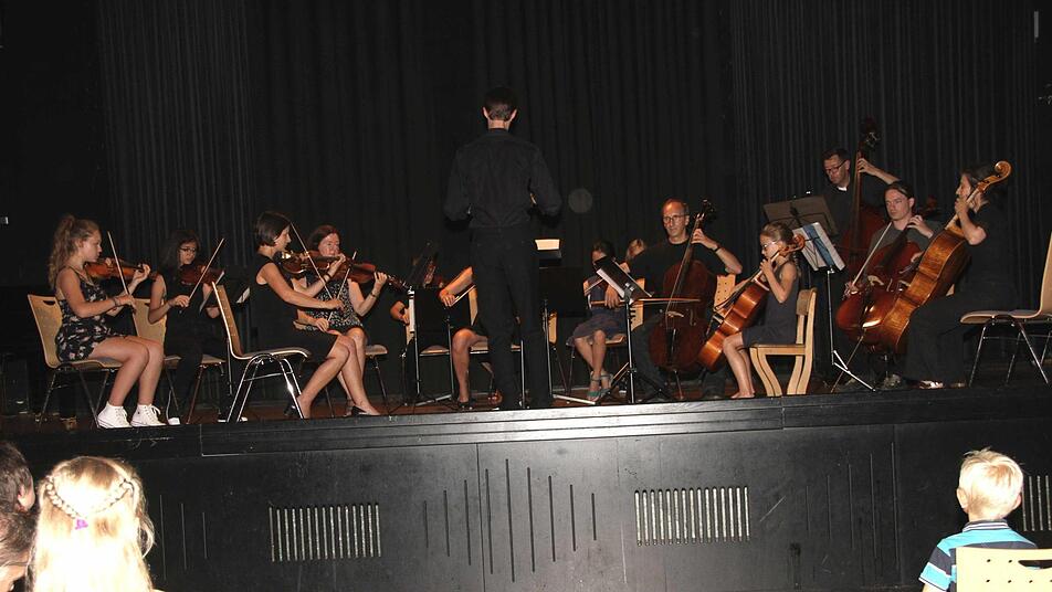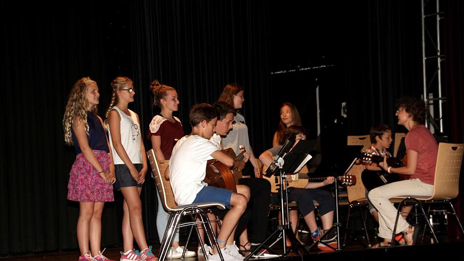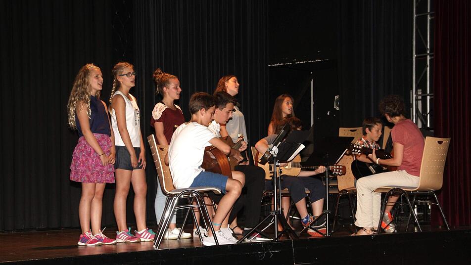 Wie Margit Denk erläuterte, bildeten sich extra zum Abschlusskonzert zwei neue Projekt-Ensembles. Das Projekt-Streicherensemble unter der Leitung von Matthias Schick begeisterte mit "Bourrée" und "La Réjouissance" aus der Feuerwerksmusik von Georg Friedrich Händel. "Mack the Knife", eine von Bertolt Brecht getextete und von Kurt Weill vertonte Moritat aus dem Theaterstück "Die Dreigroschenoper", hatte das Projekt-Bläserensemble unter der Leitung Roland Baumann einstudiert.