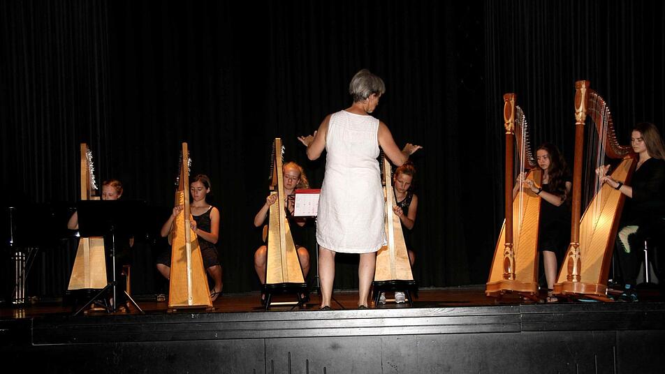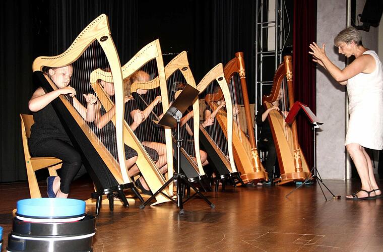 Auf der Bühne brillierten auch die "Cool Kids" mit vier bekannten und gern gehörten Songs. Dank der starken Besetzung des Harfenensembles mit sechs Spielern unter der Leitung von Uli Nix wurde der "Kanon D-Dur" des Nürnberger Barockkomponisten Johann Pachelbel zu einem wahren Hörgenuss. Wie schon bei früheren Auftritten machte die "Streetband" von Regina Scherer mit zwei Arrangements von German Marstatt auf sich aufmerksam. Die Band hatte sich dafür extra eine Basstrommel vom Spielmannszug Grenzmark ausgeliehen. Neben den vielen Solisten trugen auch der Querflöten-Spielkreis und das Blockflötenorchester und natürlich auch das Akkordeonorchester von Roland Baumann zum Gelingen des musikalischen Feuerwerkes teil.