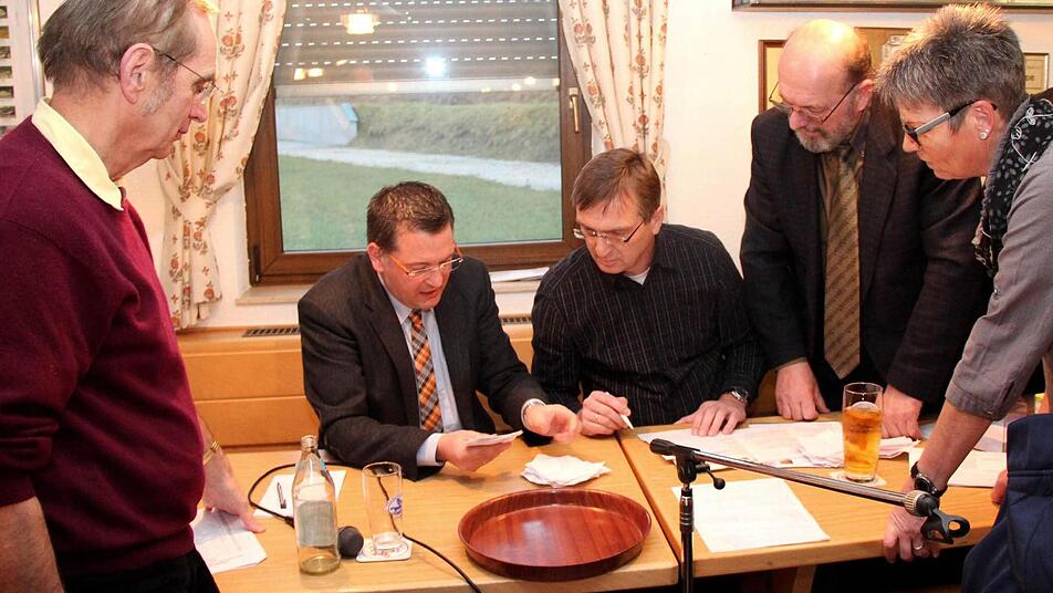 Bürgermeister Karsten Fischkal (FW), zweite Bürgermeisterin Jutta Köhler (SPD), die Gemeinderäte Jörg Bubel (SPD), Dieter Schönwald (SPD) und Paul Sänger (FW) sowie Bernhard Hobner vom Verein durften später bei den Wahlen als Helfer aktiv werden.