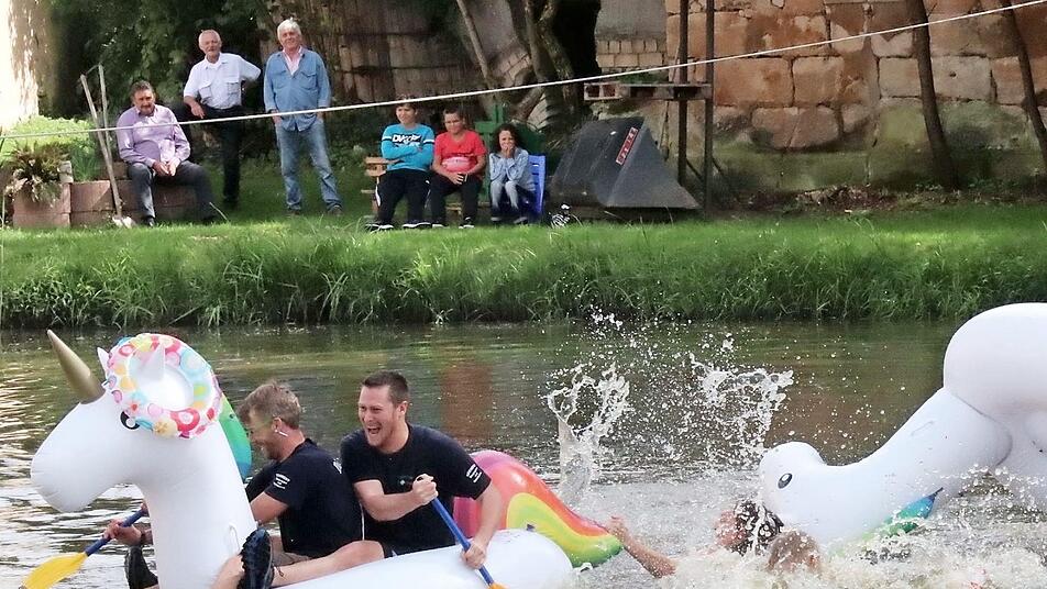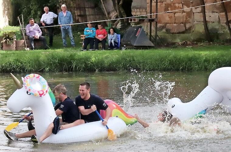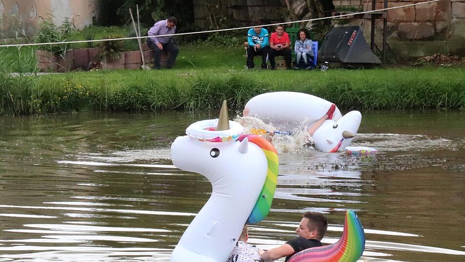 Es war eine große Gaudi, und vor allem wenn ein Einhorn kenterte, war die Freude der Zuschauer groß. Das Team aus Vorra hatte seit 2014 die Spiele immer gewonnen und durfte im vergangenen Jahr den Wanderpokal behalten, diesmal landete es auf dem letzten Platz. Aber mitmachen ist ja bekanntlich alles.
