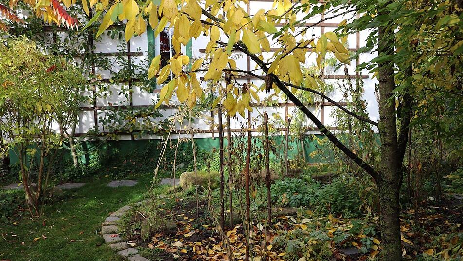 Während sich ein putziges Laufenten-Pärchen watschelnd auf die mit Wasser gefüllte Emailleschüssel zubewegt, rieseln Unmengen an Blättern von den Sträuchern. Jörg und Kerstin, die beide beruflich voll eingespannt sind, stehen entspannt daneben. "Wir lassen das Laub auf den Beeten liegen, damit die Stauden darunter geschützt sind, falls es im Winter Kahlfröste gibt", sagt der leidenschaftliche Bio-Gärtner. Obwohl der Garten nicht groß ist, ist eine Vielzahl an heimischen Sträuchern wie Haselnuss und Hainbuche zu sehen.