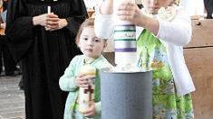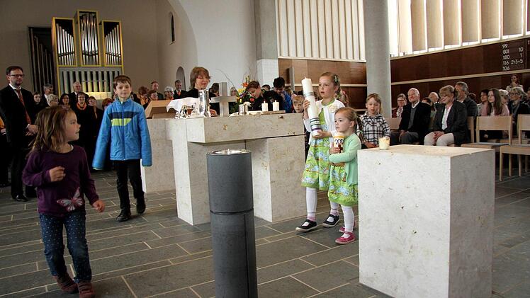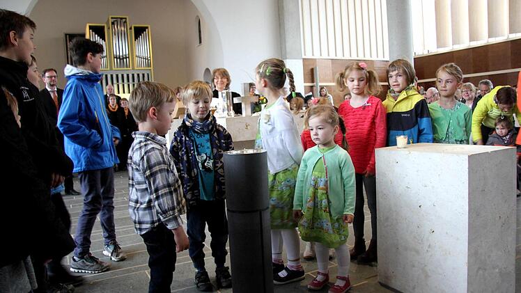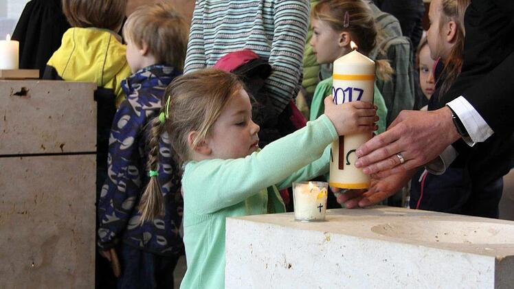Deshalb stünden Kerzen auf dem Altar und eine Osterkerze in einem Leuchter. So werde auch bei jeder Taufe die Taufkerze an der Osterkerze angezündet. Am Ostersonntag entzündeten Kinder zwei Kerzen: die Osterkerze für den neuen Osterleuchter und eine weitere für den Kindergottesdienst.