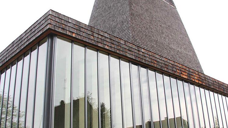 "Der Leuchter setzt sich bewusst in seiner Materialität von Altar, Taufbecken, Ambo und Altarkreuz ab, um seine Eigenständigkeit zu verdeutlichen. Seine Formensprache fügt sich jedoch in die bestehende geometrische Sprache des Raums ein und lässt den Leuchter so zu einem Teil dessen werden. Eine Schattenfuge am Fuß steht in Bezug zu den Altarleuchtern und verleiht dem Leuchter einen etwas schwebenden Charakter", erklärt dazu die Künstlerin.