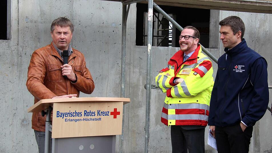 Zum Richtfest begrüßten der CSU-Bundestagsabgeordnete und Vorsitzende des BRK-Kreisverbandes, Stefan Müller, sowie Dirk Goldstein, Vorsitzender des ASB Erlangen-Höchstadt, die zahlreichen Gäste. "Das Projekt ist einzigartig in Bayern, und wir sind froh, dass nach der etwas schwierigen Planungsphase und dem heutigen Richtfest die Fertigstellung in greifbare Nähe rückt", erklärte Stefan Müller.