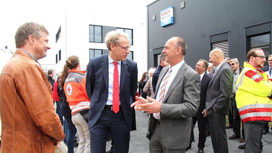 Landrat Alexander Tritthart (CSU) und Bürgermeister German Hacker (SPD) hoben ebenfalls die Besonderheit der Zusammenarbeit hervor. Der Landrat bezeichnete es als ein wichtiges Zeichen für die Bevölkerung, dass sich Organisationen mit dem gleichen Ziel zusammentun und damit eine Vorbildfunktion erfüllen, denn die Herausforderungen würden in Zukunft nicht geringer werden. Wie Hacker ergänzte, bekommt die Rettungswache noch eine zweite Zufahrt, "aber nicht getrennt nach ASB und BRK, ansonsten machen wir eine Einbahnstraße", setzte er scherzend hinzu.