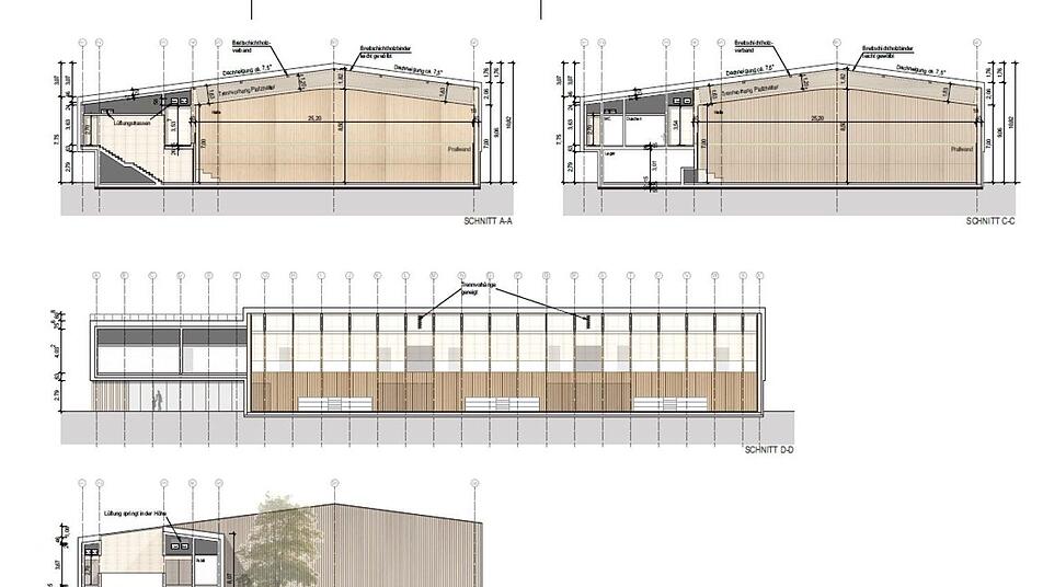 Die Planer setzten die vom Arbeitskreis Sportstättenentwicklung ausgearbeiteten Vorschläge um, jetzt präsentierte Architekt Bernd Stadelmann dem Gremium das Ergebnis und hatte zur Sitzung auch sämtliche Fachplaner mitgebracht. Die Ballsporthalle soll neben der Mehrzweckhalle in Holzständerbauweise errichtet werden. Neu war die Mitteilung des Planers, dass der Technikbereich aus statischen Gründen in Betonbauweise ausgeführt werden soll.