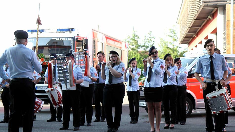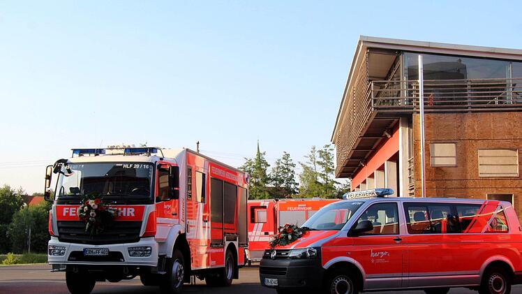 Wie die Herzogenauracher Feuerwehr zu dem neuen Fahrzeug kam, einem "Wunderwerk" an Technik, das mit Blumen geschmückt und blitzblank vor der Halle stand, schilderten Bürgermeister Hacker und Kommandant Rainer Weber. "Das hätte vorhin als erstes Fahrzeug mit ausrücken müssen, aber da hätte ich Probleme mit den Feuerwehrfrauen wegen des Blumenschmuckes bekommen", erklärte Kommandant Weber schmunzelnd.