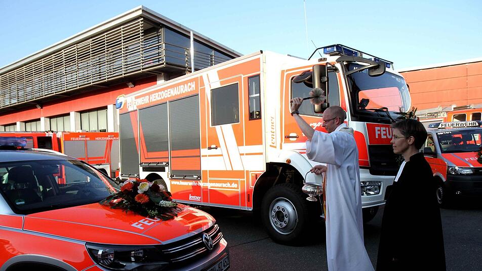 Es hat einen 1600-Liter-Wassertank sowie 200 Liter Schaum und eine umfangreiche technische Ausstattung, es kostete über 430 000 Euro und erleichtert die Arbeit der Herzogenauracher Feuerwehrleute: Das neue Hilfeleitungslöschgruppenfahrzeug 1 (HLF 20). Diese Errungenschaft wurde zusammen mit zwei weiteren Fahrzeuge nun feierlich gesegnet und ihrer Bestimmung übergeben.