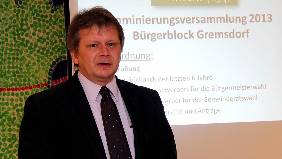Der Bürgerblock Gremsdorf schickt Walter als für das Bürgermeisteramt ins Rennen. Amtsinhaber Kleetz kandidiert nicht mehr.