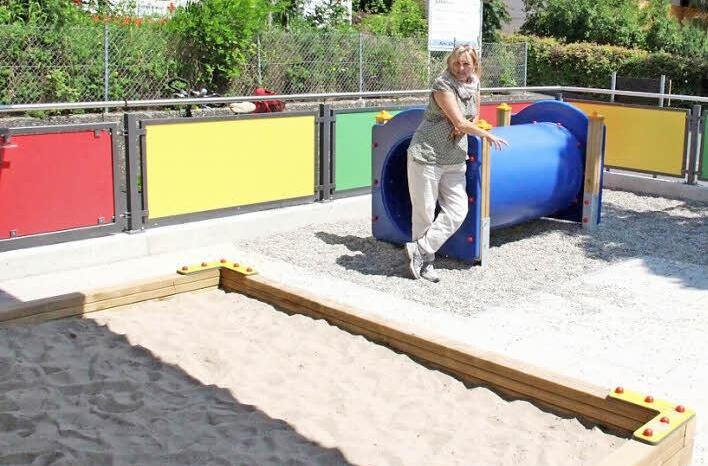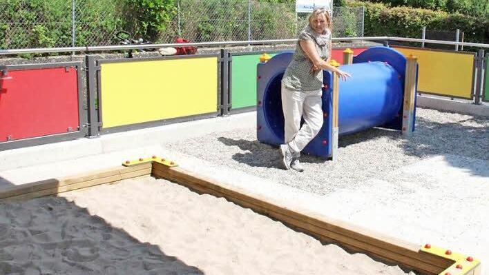 Die Spielplatzprüferin Heidemarie Haus schlägt für den Außenbereich der Aischer Kinderkrippe einige Verbesserungen vor.