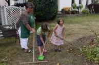 Im Moment behilft sich Bauer mit einer grünen Bindeschürze, wenn sie mit ihren Enkelinnen Annalena und Teresa die Falläpfel im Garten zusammenrecht. "Meine Kittelschürze passt mir nicht mehr, die ist beim Waschen so arg eingegangen", sagt sie mit Augenzwinkern.