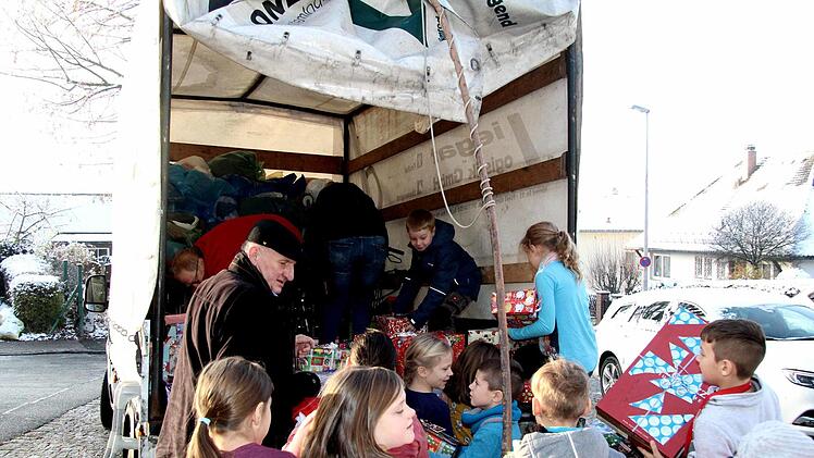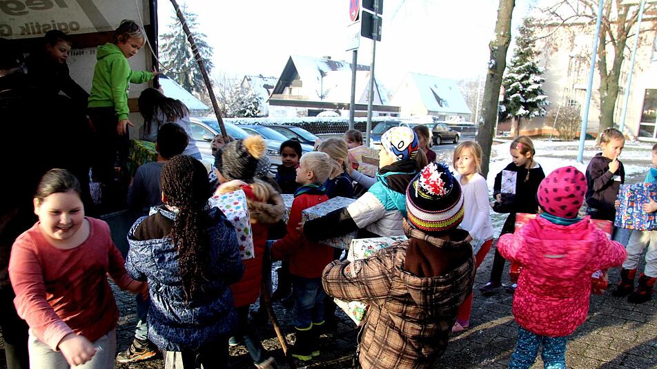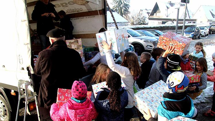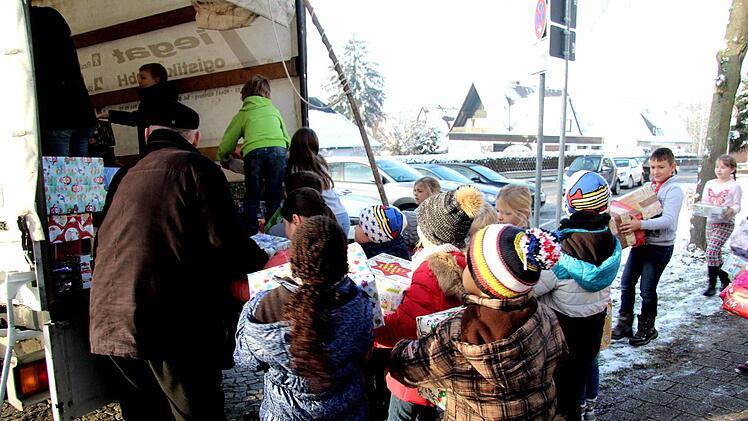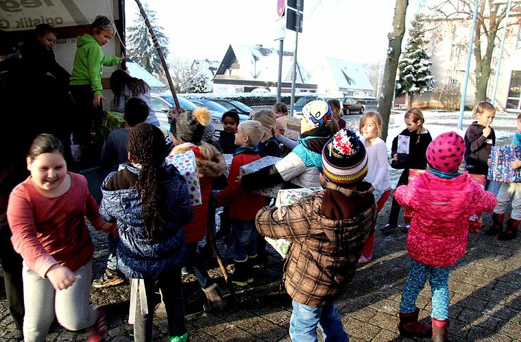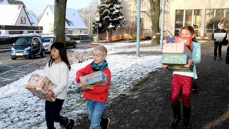 Mehr als 200 schön verpackte Päckchen haben die Grundschüler der Carl-Platz-Schule am Freitag an die Familie Jakob Britz übergeben und auf die Reise nach Rumänien geschickt. Damit wird zum vierten Mal eine tolle Idee für eine Hilfsaktion für Kinder im rumänischen Banat umgesetzt. Jakob Britz stammt aus Lenauheim in Rumänien und überrascht dort Kindergarten- und Grundschulkinder mit einem Weihnachtsgeschenk.
