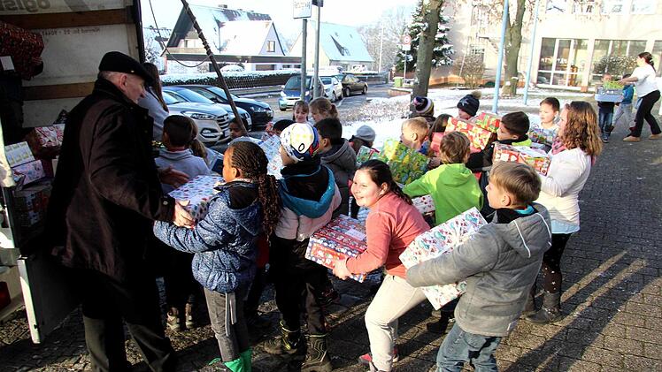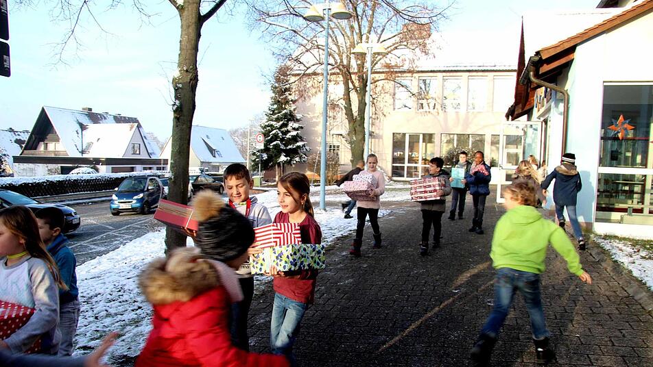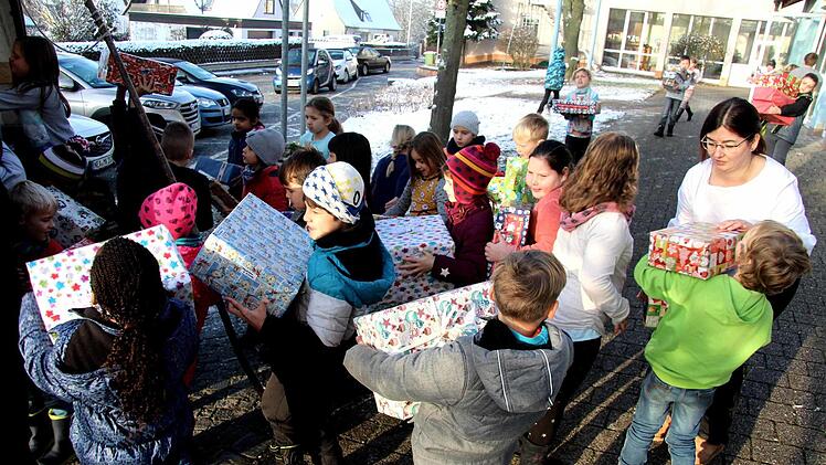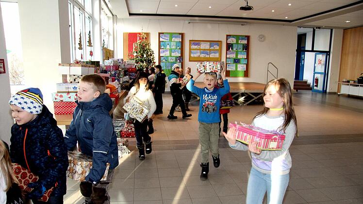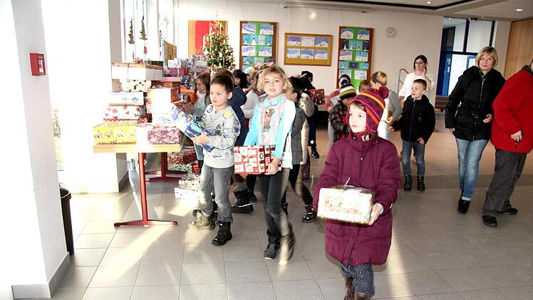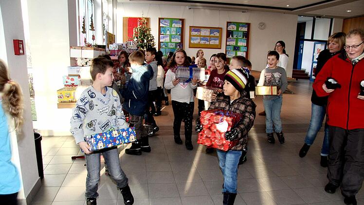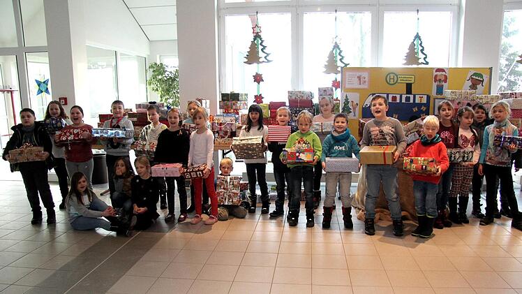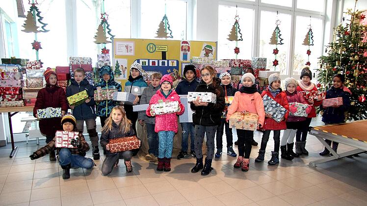 Die Lehrerin Heike Hausecker der Klasse 2g organisierte wieder die Aktion d "Geschenke im Schuhkarton" an der Schule. Sie hat viel Unterstützung dabei von Kindern, Eltern und Elterneirat sowie dem Kollegium und dem Hausmeister. "Ich finde es toll, dass ihr von euren Sachen was abgebt, um Kindern eine Freude zumachen, die an Weihnachten kein Geschenk bekommen", lobte Heike Hausecker.