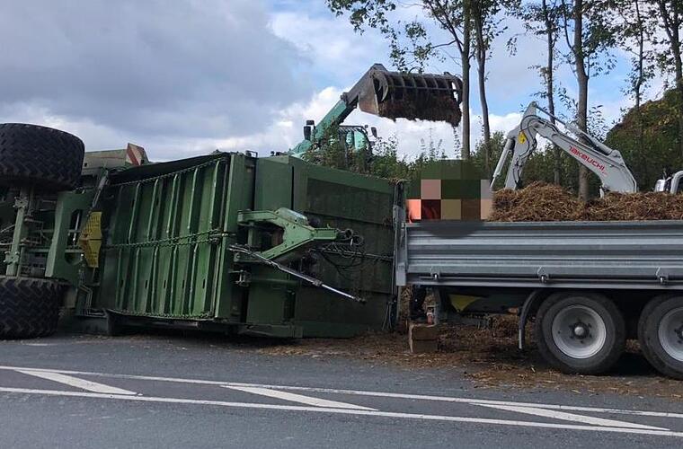 Ein mit Anhänger mit Pferdemist kippte am Mittwoch in der östlichen Einfahrt zur Bundesstraße 470 in Adelsdorf um und verteilte den Mist im Straßengraben.