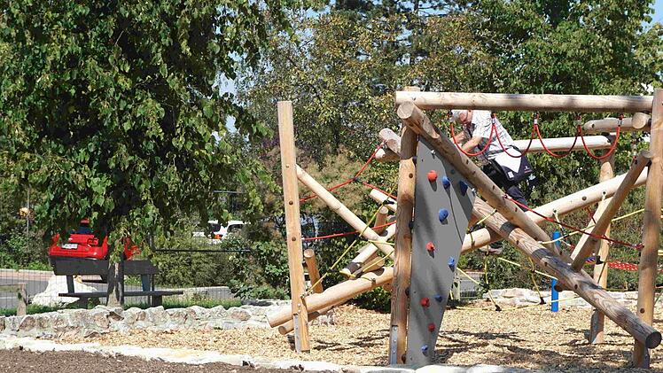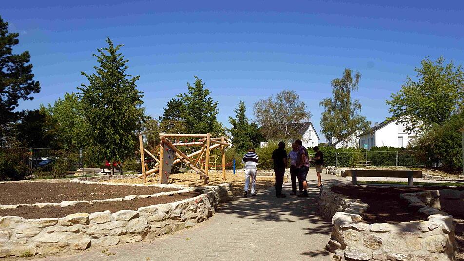 Steine der Umfassungs- und Sitzmauern hatten sich gelockert, außerdem gibt es jetzt völlig andere Sicherheitsvorschriften. Standgehalten hatten die Fundamente der Spielgeräte. "Da wurde damals nicht mit Beton gespart", erzählte der Planer und schmunzelte, denn die Firma Landschaftsbau Meyer aus Weihenzell musste deshalb einen etwas größeren Bagger einsetzen.