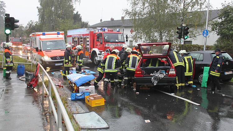 Einen lebensgefährlich verletzten Autofahrer befreiten Einsatzkräfte der Höchstadter Feuerwehr am Freitagabend aus seinem völlig demolierten älteren Polo.