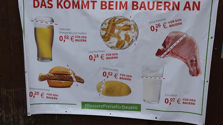 Wie Rudolf Groß vorrechnete, erhalten Erzeuger derzeit sechs Cent für ein Glas Milch, 13 Cent für das Getreide für ein Kilo Brot und sechs Cent für ein durchschnittliches Ei. Damit erreiche nur etwa ein Viertel des Lebensmittelpreises den Landwirt. Niedrige Erzeugerpreise jedoch würden kaum auf die Verbraucherpreise durchschlagen.
