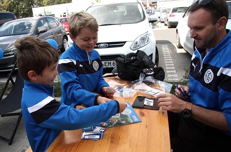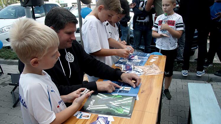 Wer fehlt noch? Wer hat wen doppelt? Wer kann tauschen? Das Gedränge und das Spektakel rund um das neue Heft beobachteten auch Bürgermeister German Hacker sowie der FCH-Vorsitzende und Landtagsabgeordneter Walter Nussel amüsiert. Hacker sprach von einer "Wahnsinnsaktion" und einem beeindruckenden Auftakt der Aktion, von der der Verein ohne Zweifel alleine schon für das Gemeinschaftsgefühl und die Motivation profitieren wird.