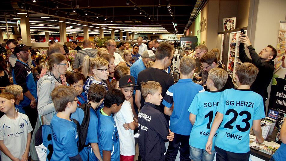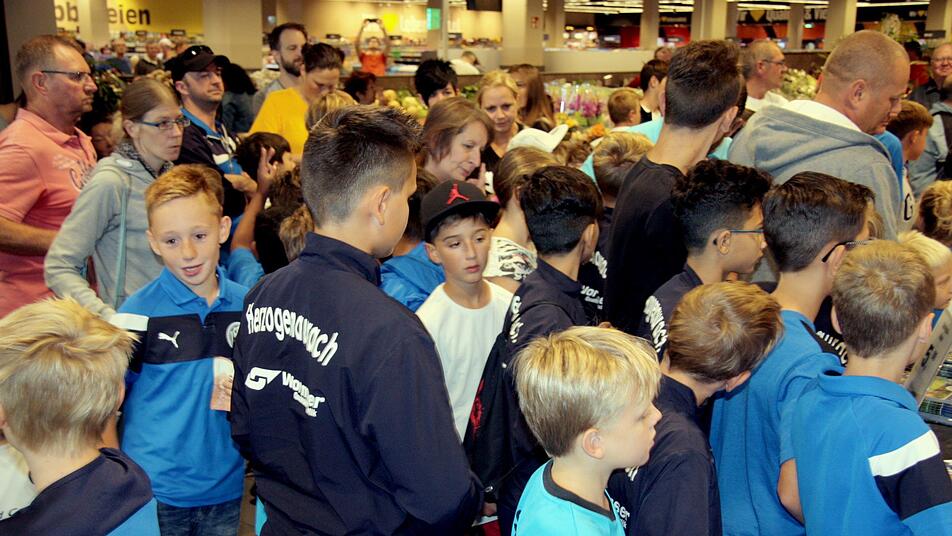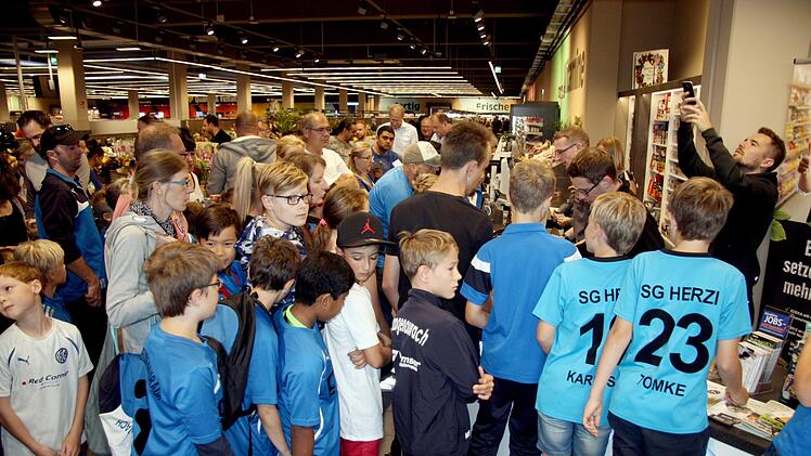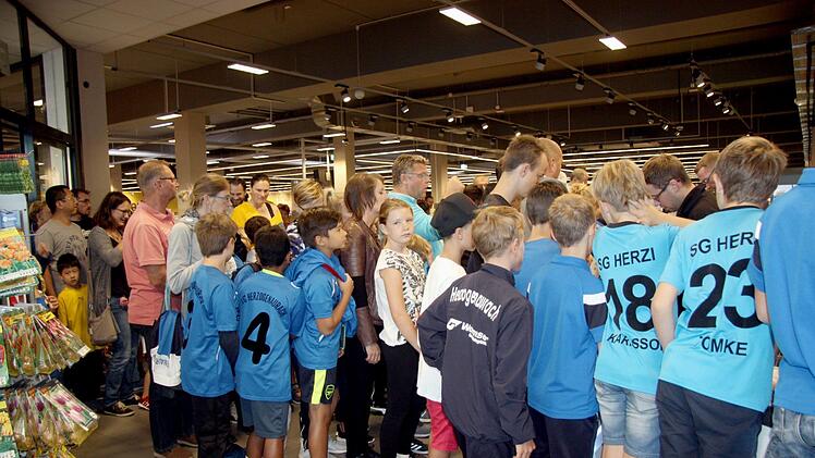 Was ist denn da los? Diese Frage stellten sich Kunden am Samstagvormittag beim E-Center Bächmann, denn solch einen Andrang zum Verkaufsstart gibt es sonst nur, wenn ein neues Handy auf den Markt kommt: Vor dem Eingang standen dicht an dicht Kinder und Jugendliche sowie Papas und Mamas - und viele in den Vereinsfarben des 1. FC Herzogenaurach. Die Menschen standen aber nicht an, um ein Sonderangebot zu ergattern. Sie alle wollten kleine, bunte Bildchen, sogenannte Sticker, erwerben.