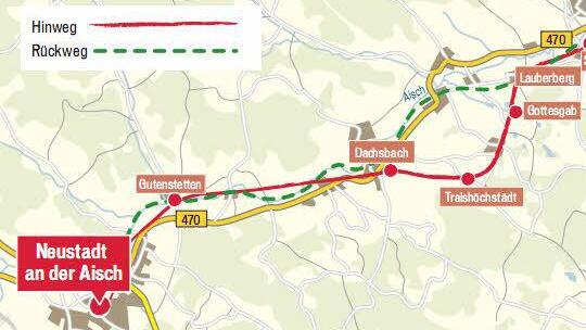 Freilich fallen dem Radelprofi auch die kleinen Schwierigkeiten für Radler auf. So führt der Aischtalradweg 500 Meter an der Quelle vorbei. Um direkt hinzukommen, muss man entweder die Bundesstraße queren oder einen Umweg über einen Schotterweg radeln. Solche Malaisen erwarten die Teilnehmer der Kreissparkassen-Etappe von Höchstadt nach Neustadt nicht.