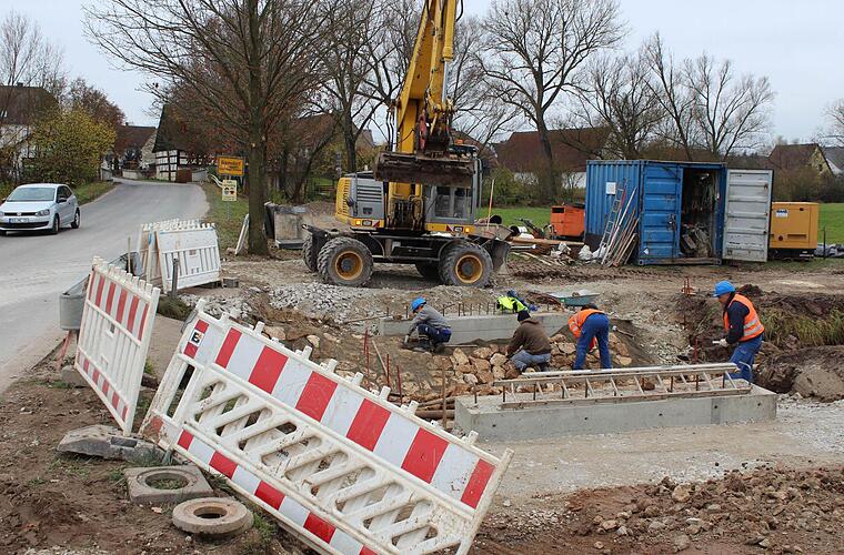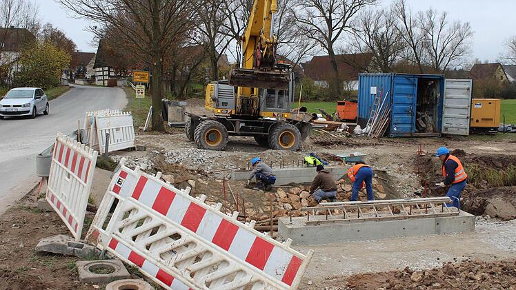 Auf Gremsdorfer Seite endet der Radweg vorerst unmittelbar an der Aisch. Hier werden die Radler und Fußgänger dann auf die Straße geleitet. Kurz vorher wird für den Radweg noch eine Brücke über einen Entwässerungsgraben gebaut. Hätte man sich dieses Bauwerk nicht sparen und die Radler zehn Meter davor auf die Straße lotsen können?
