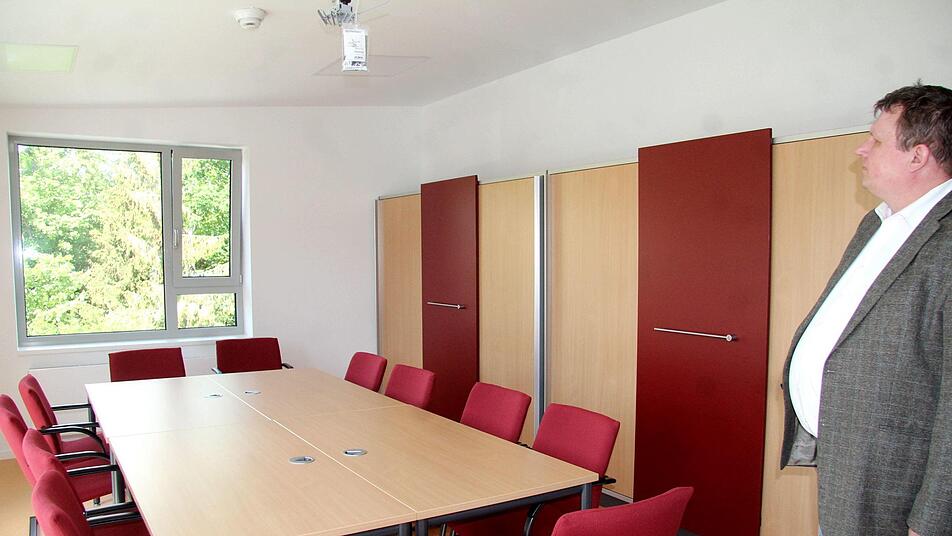 "Vor Überraschungen ist man bei An- und Umbauten nie gefeit", erklärte der Landrat. So habe sich beim Anschluss des Übergangs an den Altbau herausgestellt, dass Letzterer an dieser Stelle nur mit leichten Ziegelsteinen gemauert war. Dies sei aus den Bestandsplänen und nach Stichproben an der Fassade nicht ersichtlich gewesen. Erst im unteren Bereich habe man einen tragenden Stahlbetonüberzug gefunden. "Mit einem erheblichen materiellen, finanziellen und zeitlichen Aufwand sowie durch Einschalten eine Prüftstatikers und Baugrundgutachters konnte der Durchbruch erstellt werden." Dazu mussten massive Stahlstützen in die Gebäudeebene einzogen werden, die sich im Kellergeschoss auf einem neuen massiven Fundament gründen.