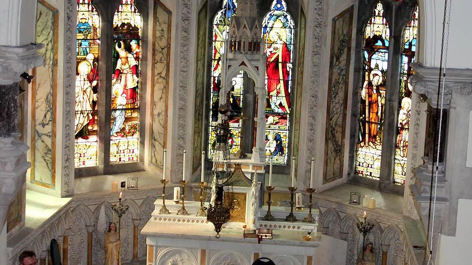 Einer der Höhepunkte des Tages war der Gottesdienst, den wir in der Herz-Jesu-Kapelle mit den Harry Clark Fenstern im "Diseart", einem ehemaligen Kloster, feiern durften. Monsignor Pádraig Ó Fiannachta, ein recht betagter überaus freundlicher Geistlicher, ist der Herr über das Diseart und er freute sich riesig über unseren Wunsch, gerade hier eine Heilige Messe feiern zu wollen. Begeistert zelebrierte er den deutschen Gottesdienst mit - "ich kann ein bisschen Deutsch!" - und verlas das Evangelium in irischer Sprache, seiner Lieblingssprache - für uns völlig ungewohnte Laute, aber die eigentliche Muttersprache der Iren, die in der Geschichte immer wieder von den Engländern verboten wurde. Nach einer Lunch- und Shoppingpause begaben wir uns auf den "Sleaheaddrive", eine manchmal etwas abenteuerliche Fahrt.
