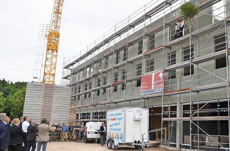 Auf dem Areal an der Erlanger Straße wurde Richtfest gefeiert. Schon 2007 hab es die ersten Gespräche, sagte Projektentwickler Schimek.