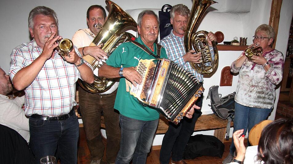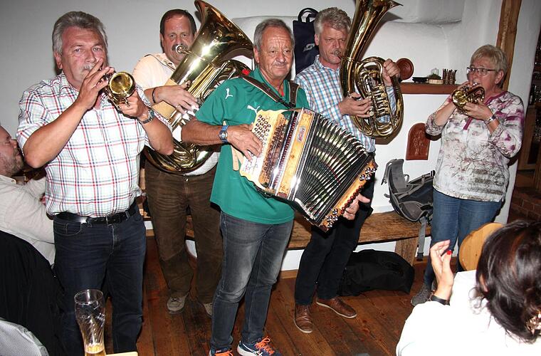 Am Abend war dann die Kogelhütte "Mei Hoamat" das Ziel aller. Da wurde gemeinsam gesungen und musiziert und es zeigte sich wieder einmal, dass sich die Kärntner und die Franken auch hier bestens verstehen. Norbert Aichholzer und Peter Flöher sind mit Blech und Quetschn die Stammbesetzung der Wolfsberger und wurden diesmal aus Herzogenaurach unterstützt von Elke Herbig, Peter Persin und Bernhard Schwab.