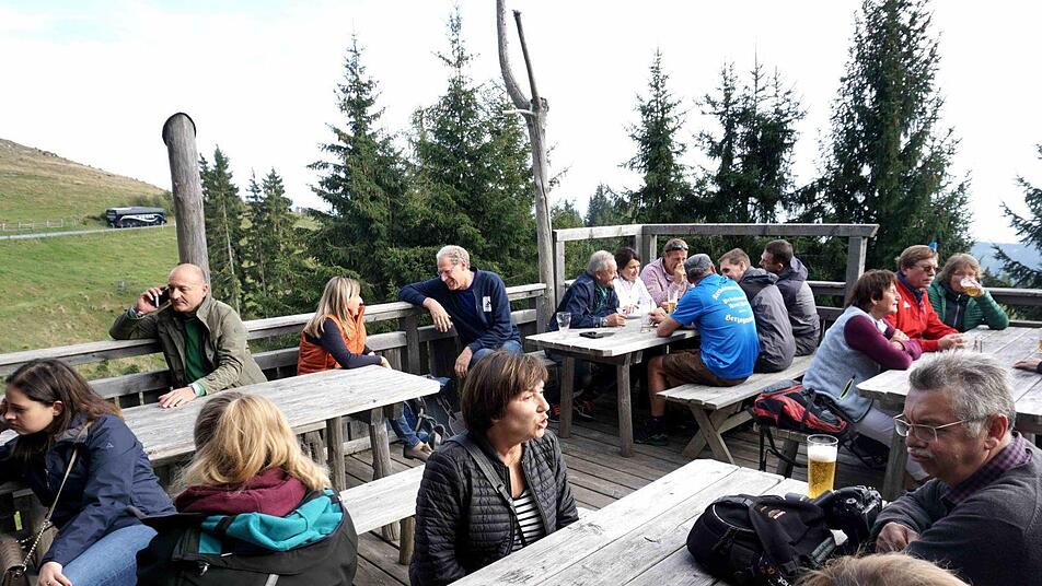 Wer sich am Abend auf der Hütte vergnügen will, der sollte sich zuvor dieses Vergnügen auch verdient haben. So jedenfalls dachte ein Teil der Delegation aus Herzogenaurach, bevor man sich ganz der Hüttengaudi hingab. Die Mutigen unter den Teilnehmern starteten deshalb am Samstagnachmittag eine anderthalbstündige Wanderung hinauf auf das Klippitztörl. Herzogenaurachs Bürgermeister Hacker ging da freilich mit gutem Beispiel voran.