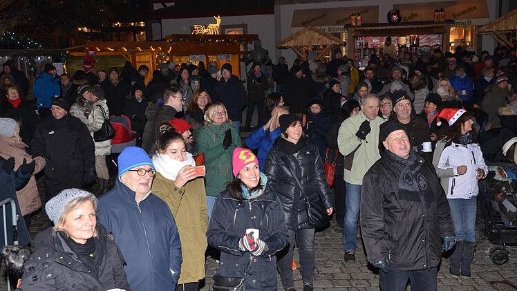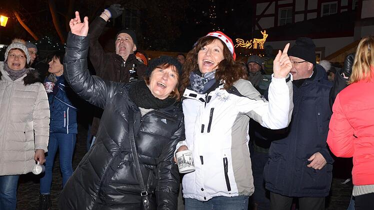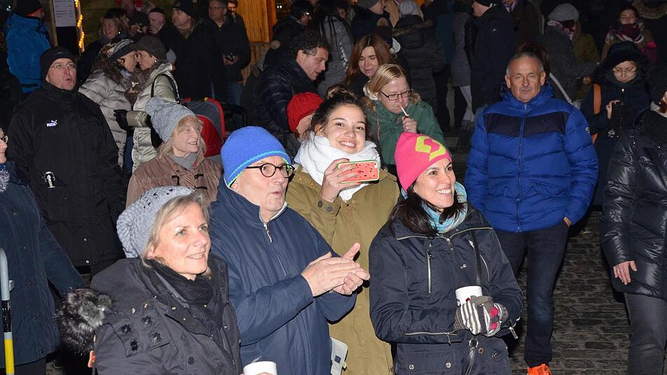 Und die Gäste waren gut gelaunt, auch wenn das Wetter ungemütlich war und man gegen die Kälte schon hüpfen musste. Manche sangen die Hits mit, andere ließen Sternwerfer leuchten und Glühwein und Apfelpunsch wärmten von innen.