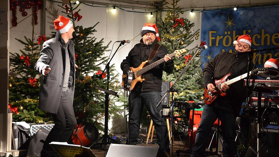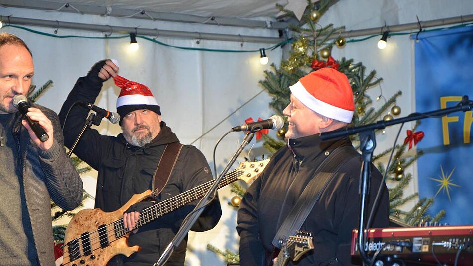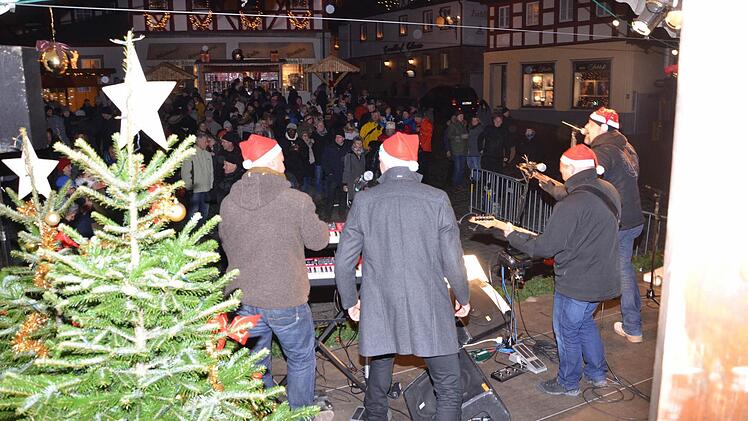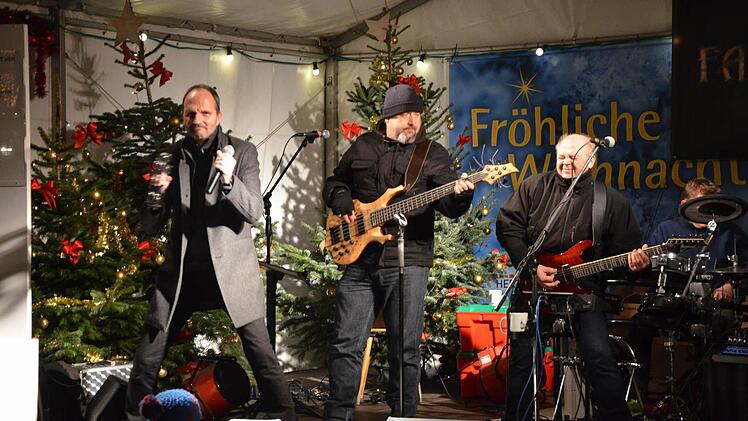 Wer auf "Last Christmas" von George Michael gehofft hatte, der wartete vergebens. Denn die Weihnachtsschnulze, die in diesen Wochen im Radio rauf und runter gedudelt wird, hatte die Band "Faded Glory" nicht im Programm. Stattdessen gab's viele andere Ohrwürmer, rockiger Natur und zumeist aus den vergangenen Jahrzehnten, aufs Gehör. Mit Bon Jovi und Bryan Adams, Manfred Mann und Michael Jackson stimmte sich ein fröhliches Publikum beim vierten "After Work Glühwein" auf dem Marktplatz zwei Tage vor Heiligabend auf die Feiertage ein.