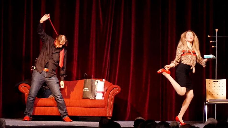 "Es kratzt auf einmal im Hals und ich glaube, ich kann nicht mehr lange weitermachen", sagte Buchenau und verließ die Bühne. Marina Tinz kam und schlüpfte während des Abends in mehrere Rollen und sah sich in eine Organversammlung versetzt. "Ich bin's, die Leber vom Peter. Er hat mir gesagt, ich darf nicht mitspielen. Die Nase stiehlt mir immer die Show und schleimt sich überall ein", verkündete sie und mimte dann anschließend eine Ärztin, weil der Hausarzt ebenfalls wegen Männerschnupfen im Bett lag.