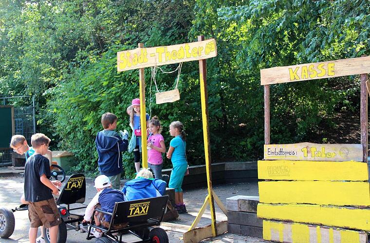 Wo Häuser gebaut werden, gibt es natürlich auch einen Baumarkt und einen Baumeister, der im Bau- und Fundamt residiert. Eifrige Bauleute errichten gerade ein Holzhaus - eine Auftragsarbeit. " Am Donnerstag kommt die Jugendfeuerwehr, und da wird dieses Haus in Brand gesteckt und die Feuerwehr löscht es", erklärt Anna Kohl, eine vom Team, die dieses Jahr das erste Mal mitmacht und begeistert ist.