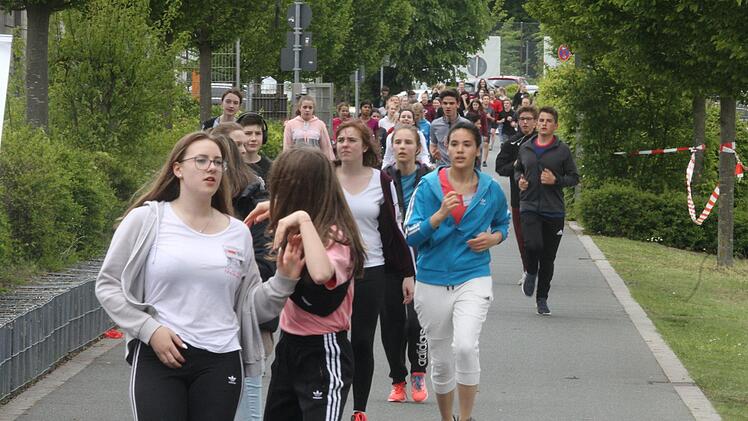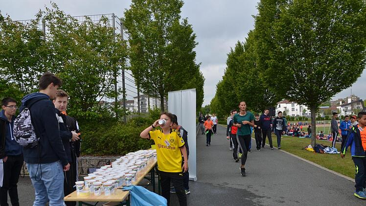Lena schnauft und schimpft in die Runde: "Einmal schaffen wir doch noch!" Die anderen wollen etwas trinken, etwas essen. Doch Lena treibt ihre Klassenkameraden aus der 7c an. "Es ist für einen guten Zweck." Jede absolvierte Runde bringt Geld und essen könne man ja wohl auch später. 400 Meter auf der Tartanbahn oder ein Kilometer rund um den Sportplatz.